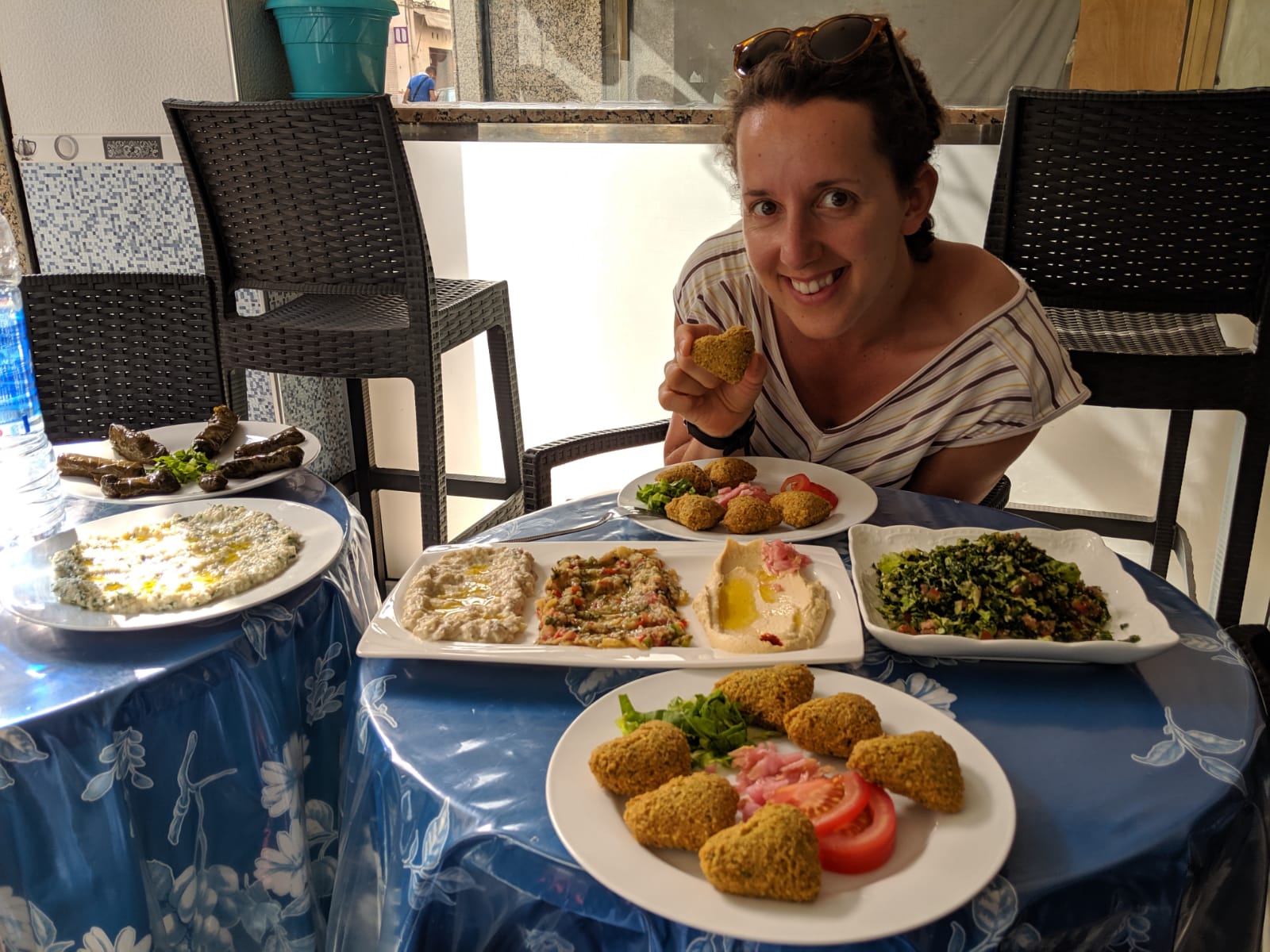 Just because you’ve also been tracking our dinners today we went back to the falafel spot and enjoyed a truly delicious dinner with hummus, two types of eggplant spreads, grape leaves and heart shaped falafels! Yes, shaped like a heart, the cook said they were for love. That was too funny! You’ll like the picture below.