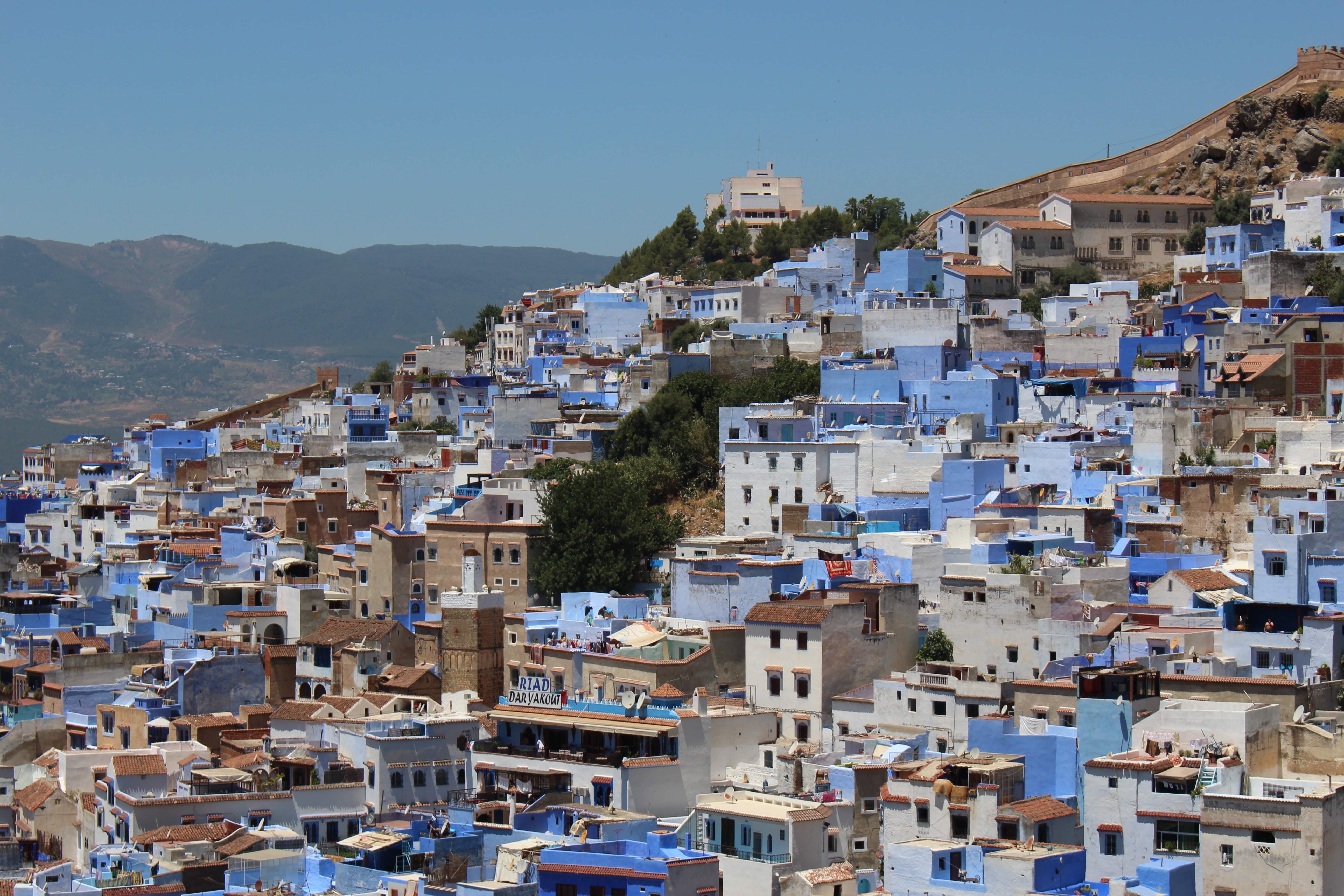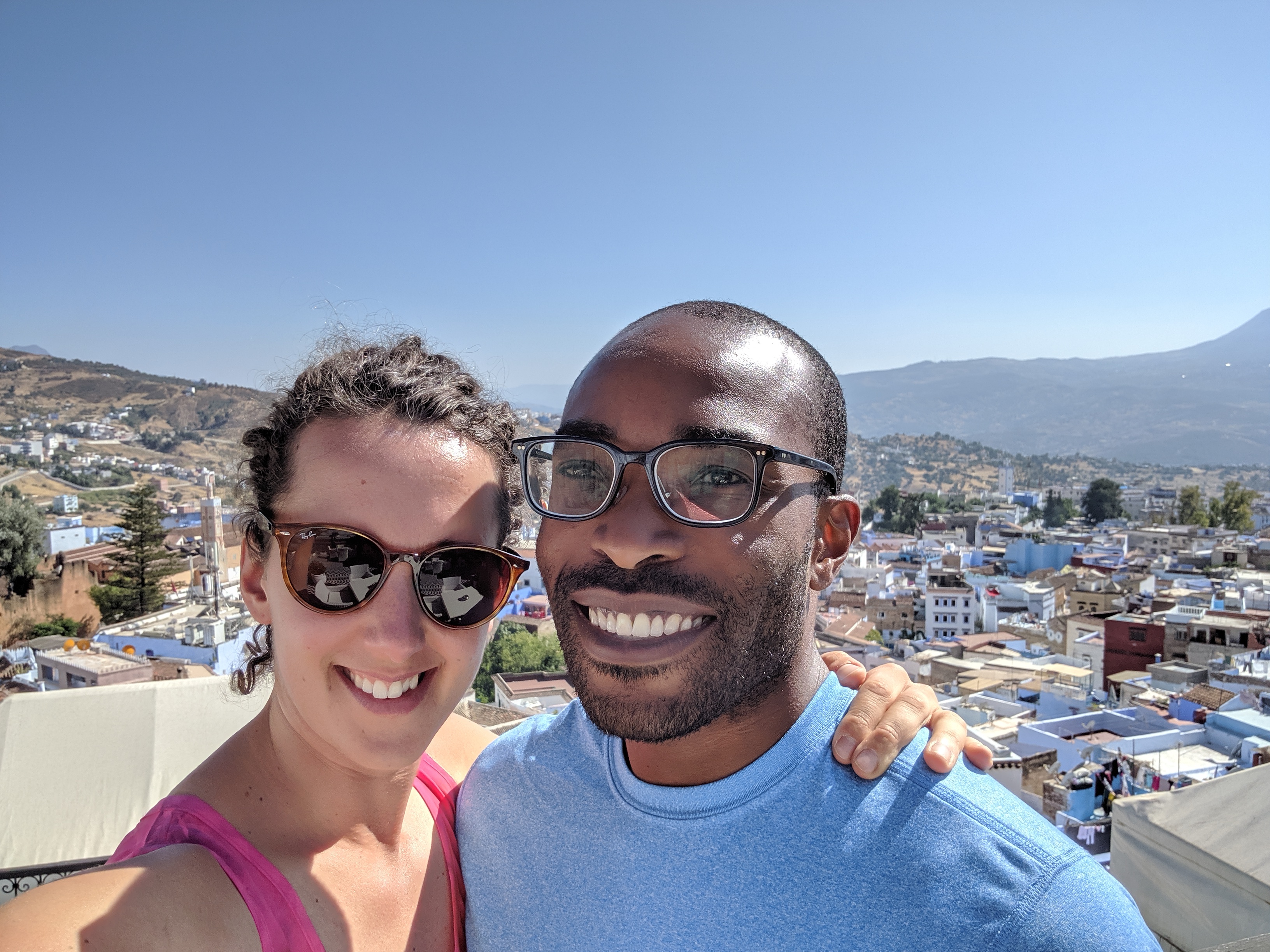 We began the day with a hotel breakfast, it was a pretty large spread and included cereal so you can guess what I had. It was pretty sweat though. We meet our tour guide, Mohammed who took us along with the driver to some of Tangier’s hot spots. It began with a quick stop at the largest mosque in the city seen. We were informed a bit more about Islam and some of the core values Muslim must live by. Our tour guide was a bit late which he apologized for but he just had his first baby and has been up all night with his child crying. We were offering our congratulations, he said his child’s name is Jad, which means “the honest one.” He told us most tourists think being a Muslim means praying five times a day but he said it’s more about being an honest, kind and generous person because without that the prayers will be empty. We drove through a neighborhood called, California. This name came from the hippies and British people who settled here and got high all the time. Those were his exact words! The name stuck and now you’ll find most of Tangier’s upper class living there because the homes are large and have that California feel. There was even a cemetery built for the dogs of the people who lived there. I’ve never seen that before. We then drove over to where the Mediterranean and Atlantic ocean meet at Cap Spartel. It was a hazy day so we couldn’t see Spain from the look out point which normally we’d be able too. The water was a lovely mix of dark blue and a lighter shade of green. I was imagining these two great bodies of water meeting for the first time and what the conversation would be like. The area is also pretty heavily guarded because Spain is less than an hour away by boat so they guard the coast heavily in case people are trying to illegally cross the border. At the meeting point we also came across two large school groups. A boys group all in blue, and a girl’s group all in pink. They were excitedly taking group pictures at the ocean meeting point. Our next stop were the Hercules caves. Our tour guide doesn’t seem to believe in the mythology (I still do) and instead told us these caves were built by the Romans because they needed to a place to stay when finishing out at sea. The caves were much larger than I’d expected and they’d been recently renovated by Morocco for the tourists. Our guide explained to us that the new King is determined to make Morocco a high tourist destination by 2021. That would explain all of the new tourist spots being developed in Tangier especially along the coast for people to come and explore. We learned that the king owns three palaces and a summer beach house. We also learned that when you see many Moroccan flags, as Obi and I noticed when driving into Tangier, that’s an indicator the king is either arriving, has arrived or just left. Maybe we were in the same city as the king;)
