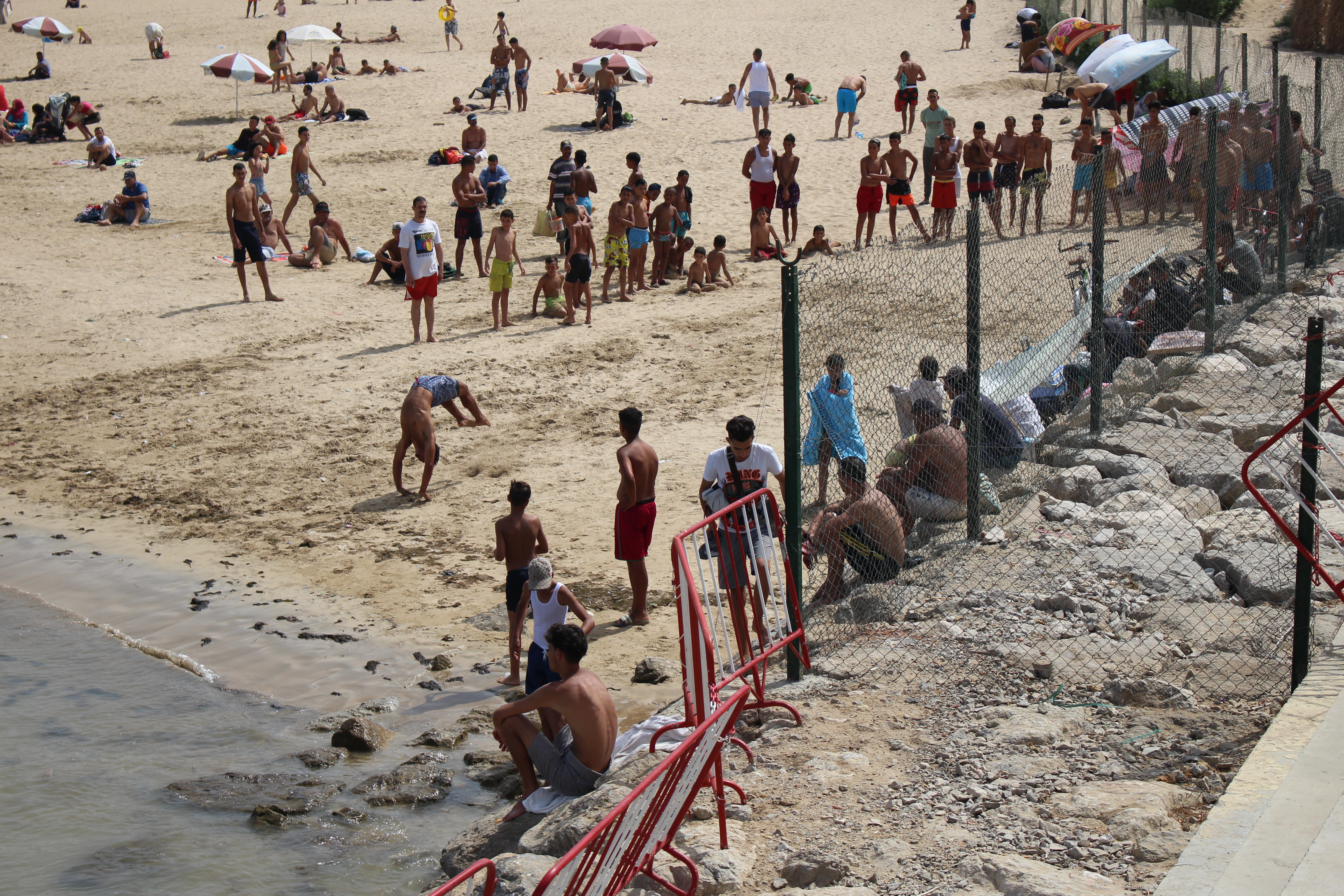 We tried, as per Obi’s suggestion a Valencia ice cream shop on the new pier near the beach we were walking along yesterday. I haven’t found the ice cream to be that tasty, it is sweet but seems to lack that rich creamy flavor. But today, oh, today’s ice cream was divine. I got almond flavor, and it was worth every bite. We sat in the shade along the water and relaxed after a long day of waking. Before reaching the end of the pier we happened to come across a large group of men and a few boys doing some serious gymnastics. They had set up a sort of informal runway on which they each took turns doing a series of round off back handsprings while incorporating back tucks and other aireal flips. The athleticism was truly impressive and had us clapping along with the other men when someone did something extreme. My favorite move was a round off followed by three back handsprings then a back pike three more back handsprings and a final back pike into a belly flop into the ocean. Wow! There were many young boys watching and some had started to learn the moves themselves. It was a lively and unique community moment.